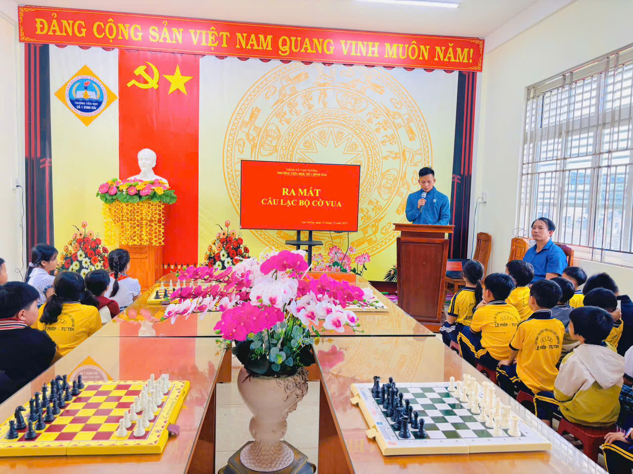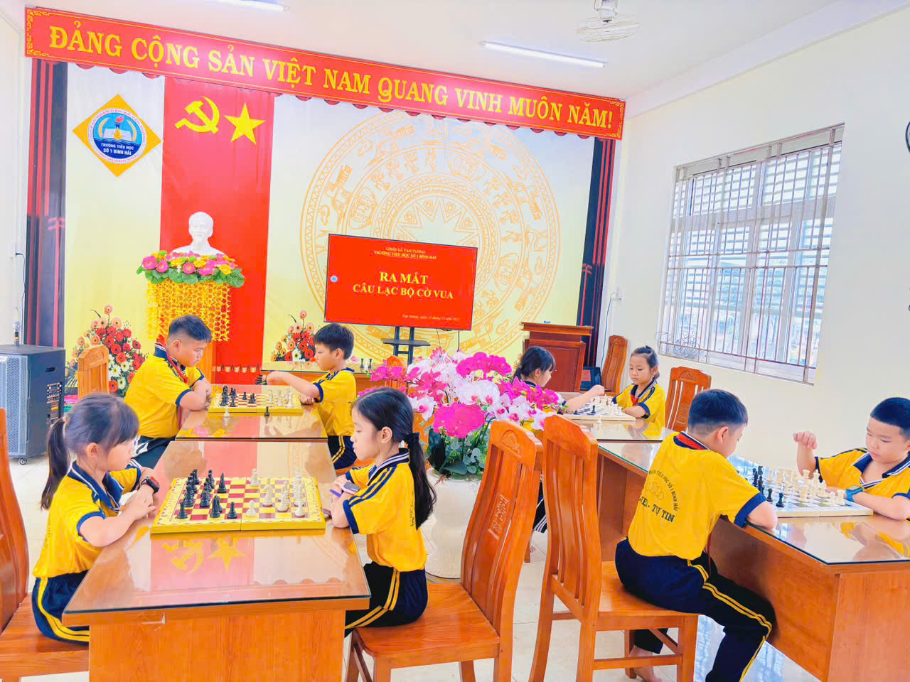 Nhằm tạo sân chơi trí tuệ lành mạnh, giúp học sinh rèn luyện tư duy logic, khả năng tập trung và tinh thần fair-play, Trường Tiểu học số 1 Bình Hải đã tổ chức Lễ ra mắt Câu lạc bộ Cờ vua
