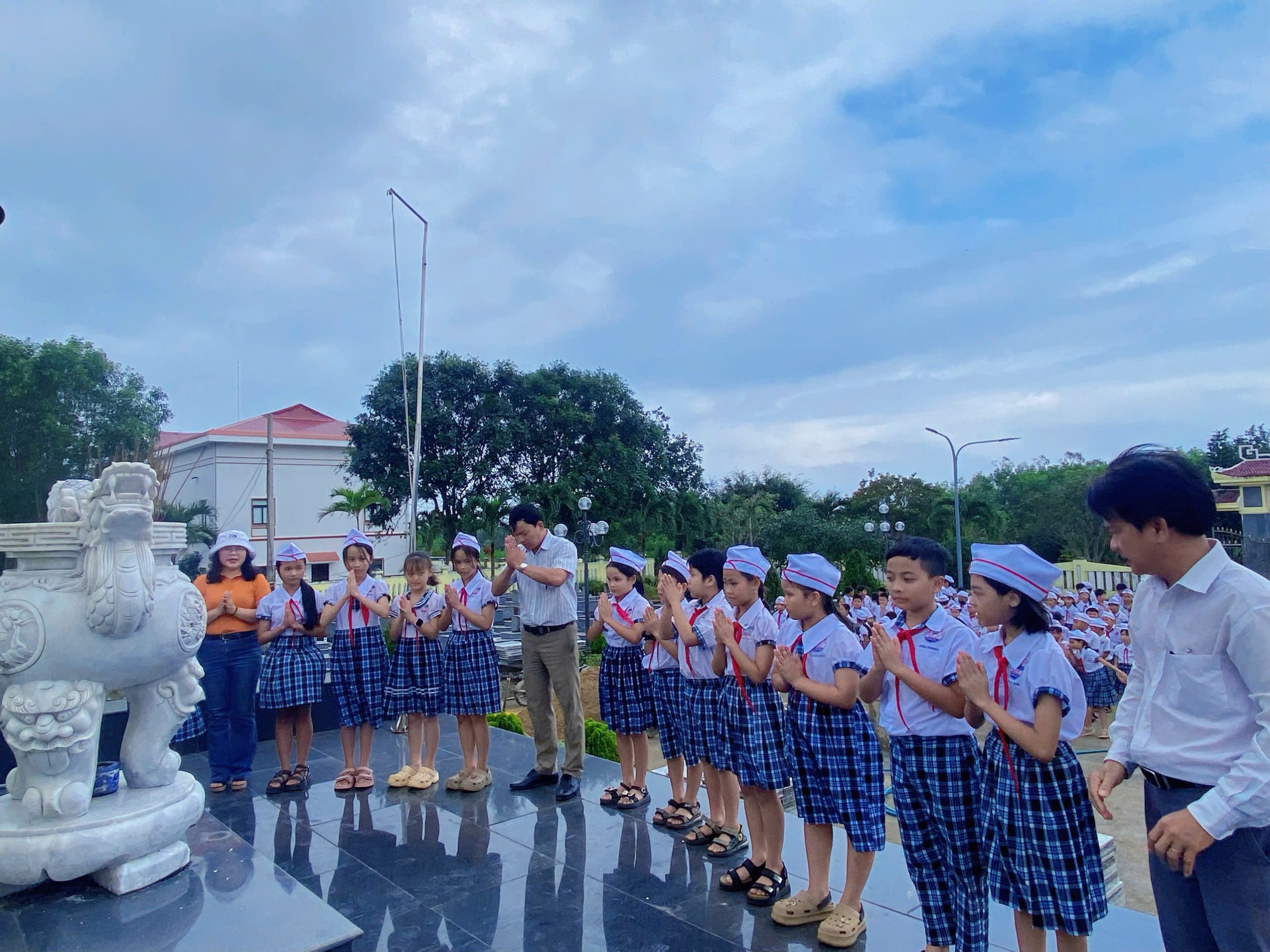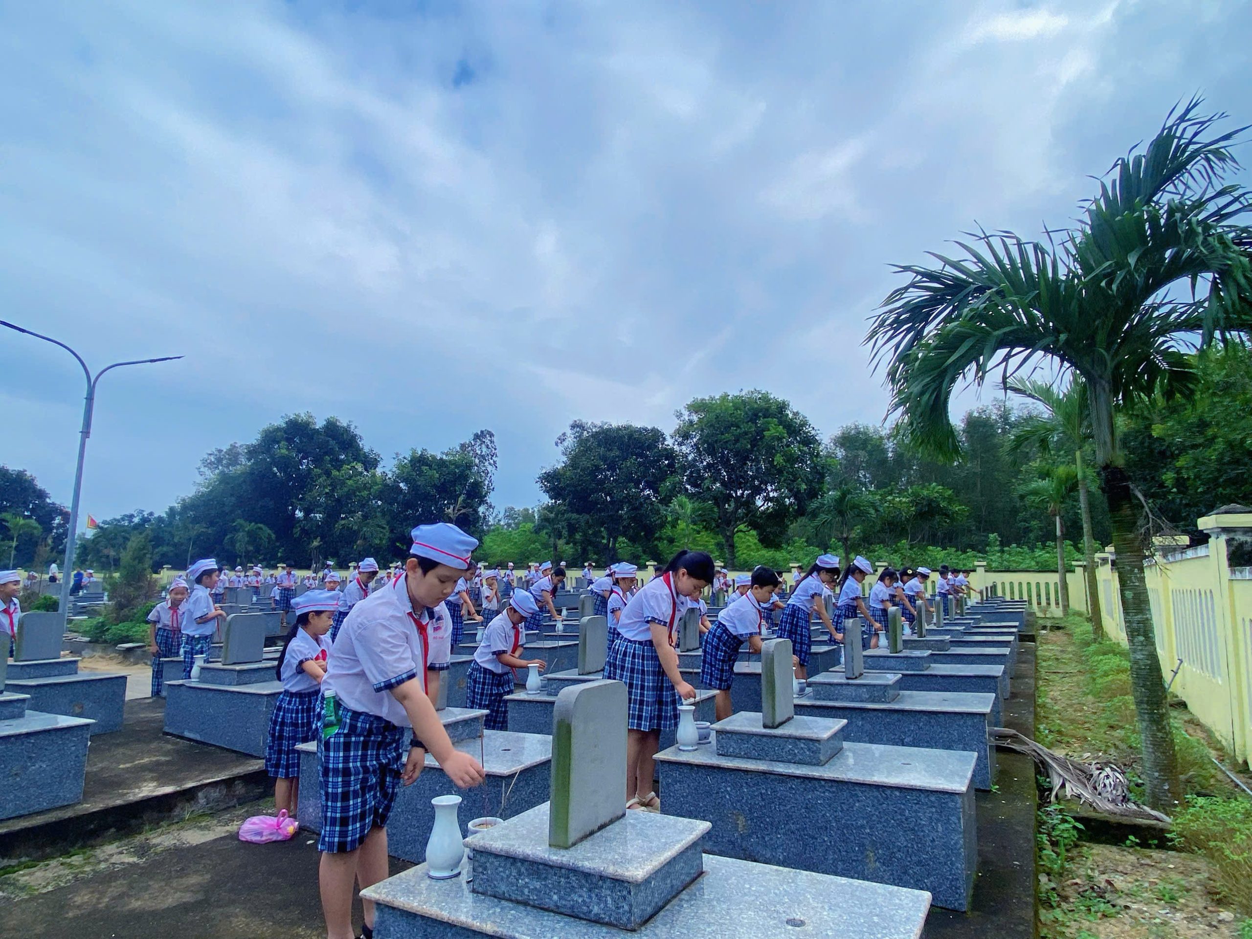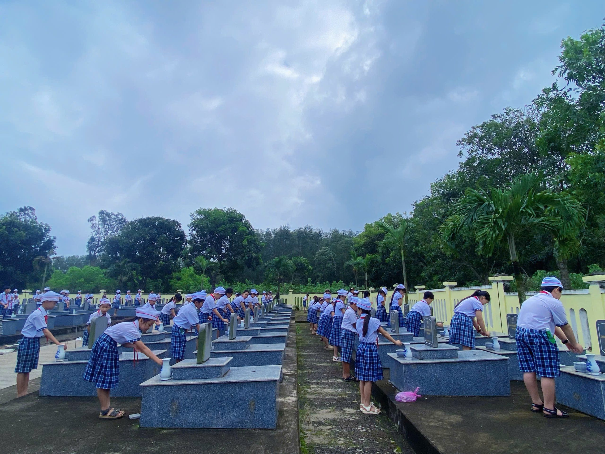 Trong không khí trang nghiêm, thầy cô giáo và các em học sinh đã thành kính dâng hương, tưởng niệm tại mộ các liệt sĩ. Hoạt động viếng hương không chỉ thể hiện đạo lý “Uống nước nhớ nguồn” mà còn là bài học giáo dục sâu sắc về lòng biết ơn, sự trân trọng hòa bình và ý chí phấn đấu học tập, rèn luyện để xứng đáng với sự hy sinh cao cả của các anh hùng liệt sĩ.