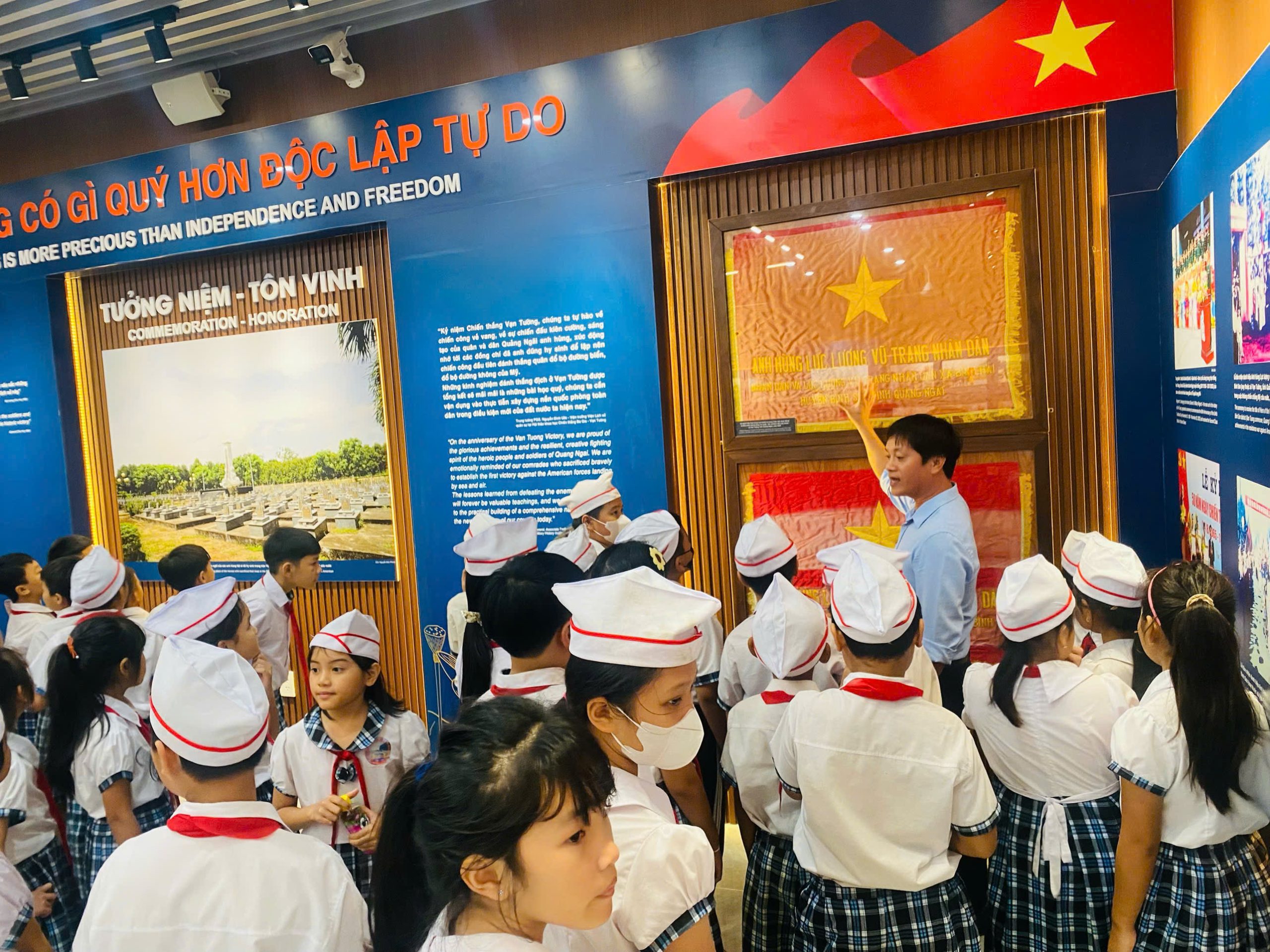 Tại Bảo tàng Chiến thắng Vạn Tường – một địa chỉ đỏ giàu giá trị lịch sử, các em học sinh được nghe giới thiệu về chiến công hào hùng của quân và dân ta trong cuộc kháng chiến chống Mỹ cứu nước. Những hình ảnh, hiện vật lịch sử đã giúp các em hiểu thêm về tinh thần chiến đấu kiên cường, bất khuất của cha ông, từ đó nuôi dưỡng niềm tự hào dân tộc và ý thức trách nhiệm của thế hệ hôm nay.